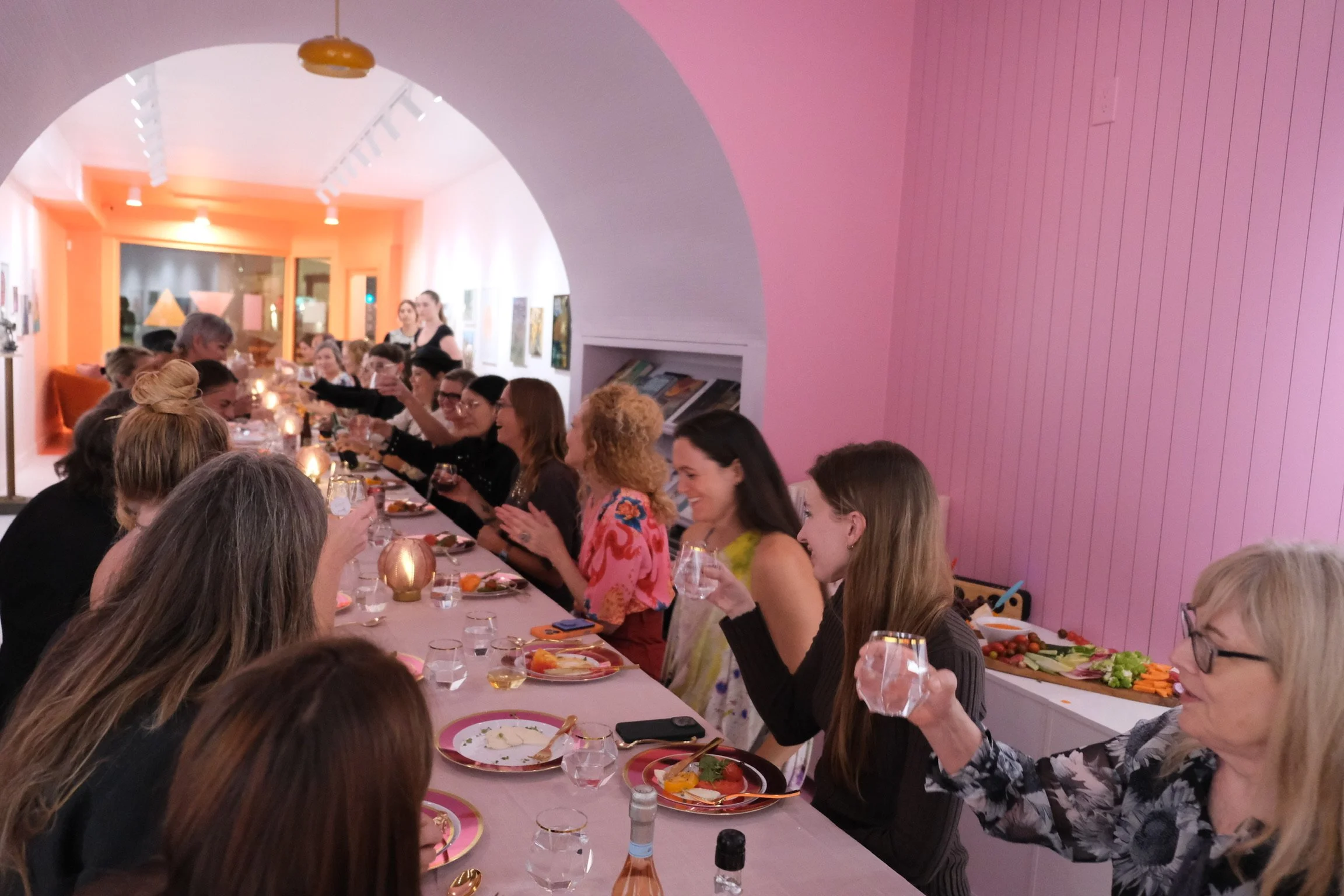 To celebrate our 2nd anniversary, each reunion artist invited another artist who had not previously exhibited at The Middle Room to pair with their work in special anniversary show AND bring as their guest to the formal sit-down dinner held within the exhibition on September 26, 2025. 22 reunion artists+22 guest artists=expanded connection+conversations+community